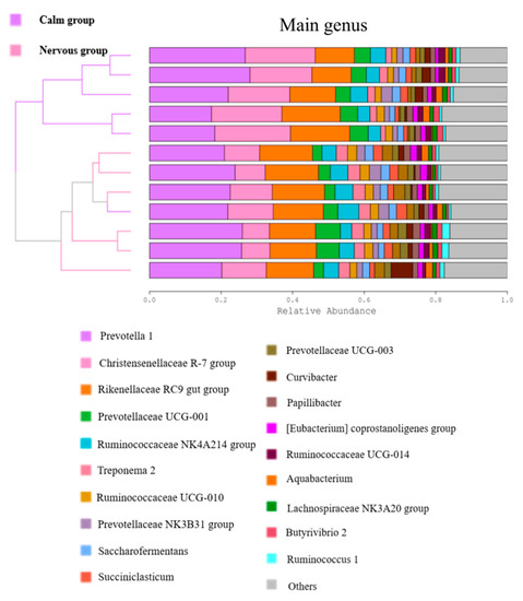 3.3.2. The Effect of Temperament on the Relative Abundance of the Rumen Bacterial Community at the Phylum and Genus Level