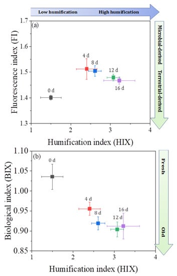 - Tang, Y.; Li, X.; Dong, B.; Huang, J.; Wei, Y.; Dai, X.; Dai, L. Effect of aromatic repolymerization of humic acid-like fraction on digestate phytotoxicity reduction during high-solid anaerobic digestion for stabilization treatment of sewage sludge. Water Res. 2018, 143, 436–444. [Google Scholar] [CrossRef] [PubMed]
