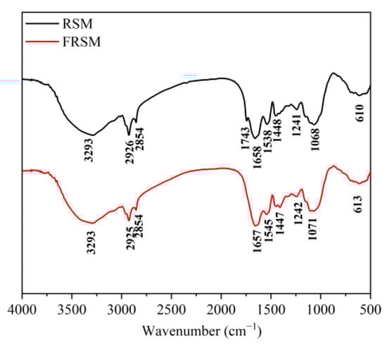 FTIR spectra of RSM and FRSM; RSM = rapeseed meal; and FRSM = fermented rapeseed meal.
