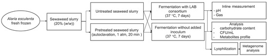 Flowchart representing the fermentation experiment. The seaweed slurry (20% (w/w)) was subjected to fermentation with LAB consortium and fermentation without any added inoculum.