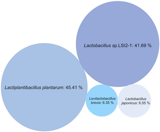 Bubble chart representing the relative abundance of bacterial strains in the LAB consortium.