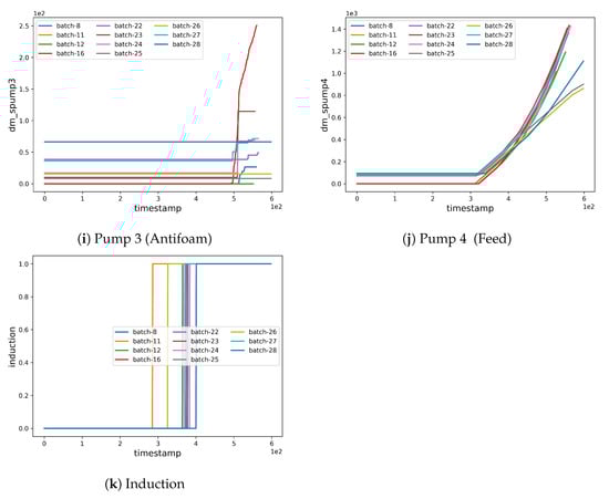 Fermentation Selection. Before performing the pre-processing, we selected a subset from the available fermentation batches (see Figure 2 and Figure 3 and also supplementary file for discarded fermenatation batches). The selection was performed considering both the quality and quantity of the data, as well as by analyzing whether the fermentation had a standard and canonical progress. Moreover, we trimmed selected data to remove missing or inconsistent values. Thus, the selected fermentations were 8, 11, 12, 16, 22, 23, 24, 25, 26, 27, and 28.