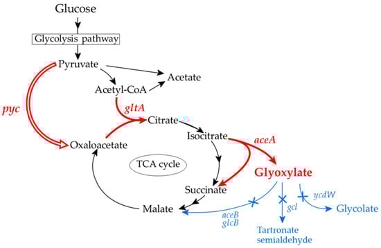 - Berg, J.M.; Tymoczko, J.L.; Stryer, L. Section 17.4: The Glyoxylate Cycle Enables Plants and Bacteria to Grow on Acetate. In Biochemistry, 5th ed.; Berg, J.M., Tymoczko, J.L., Stryer, L., Eds.; W. H. Freeman: New York, NY, USA, 2002. [Google Scholar]