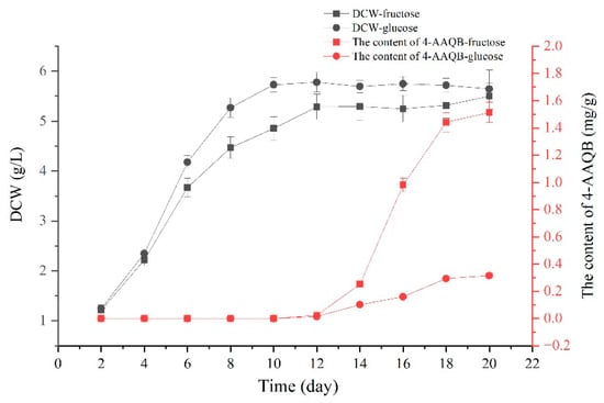 3.1. Comparison of 4-AAQB Production from Fructose and Glucose