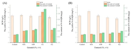 3.3. Effects of Geraniol and Farnesol on the Production of 4-AAQB