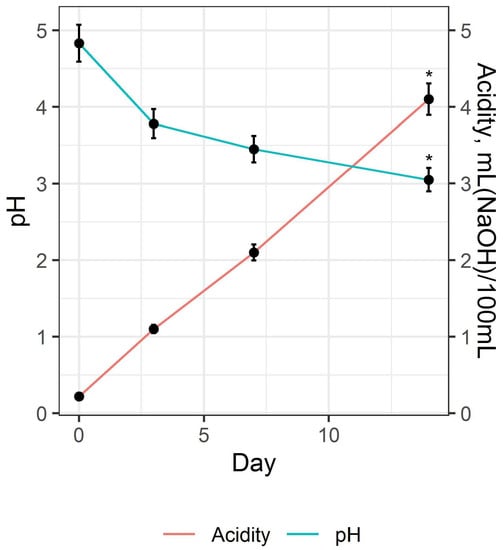 3.2. Preparation and Study of the Fermented Beverage