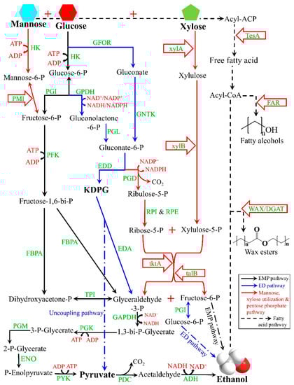 - Li, X.; Chen, Y.; Nielsen, J. Harnessing xylose pathways for biofuels production. Curr. Opin. Biotechnol. 2019, 57, 56–65. [Google Scholar] [CrossRef]