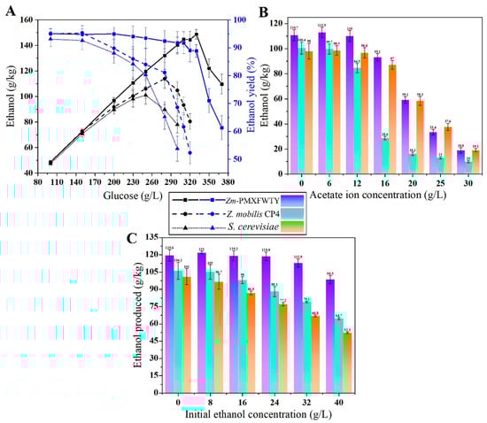 - Xia, J.; Yang, Y.; Liu, C.G.; Yang, S.; Bai, F.W. Engineering Zymomonas mobilis for Robust Cellulosic Ethanol Production. Trends Biotechnol. 2019, 37, 960–972. [Google Scholar] [CrossRef]
