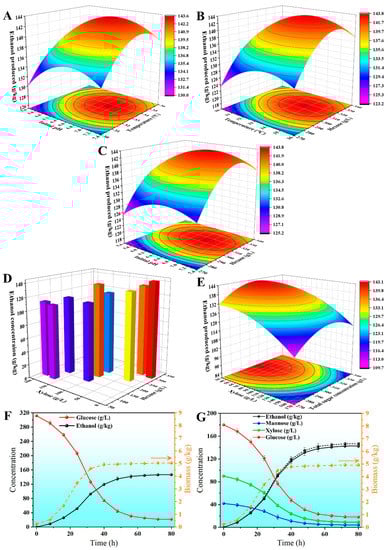 3.6. Response Surface Experiments for Optimal Fermentation Conditions and Hexose–Xylose Coupling