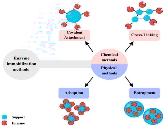 Figure 8 shows a schematic that demonstrates some of the methods of enzyme immobilization, dividing them into chemical and physical techniques.
