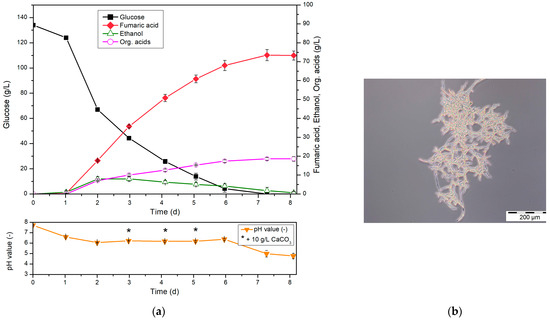 - Eidt, L.; Kuenz, A.; Prüße, U. Biotechnologische Produktion von Fumarsäure: Prozessoptimierung und Kontrolle der Morphologie. Chem. Ing. Tech. 2018, 90, 1272. [Google Scholar] [CrossRef]