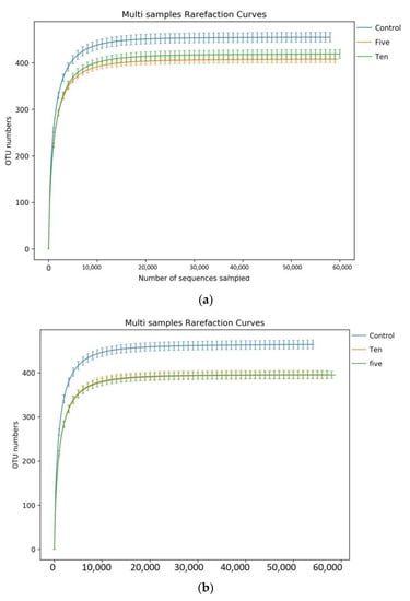 - Parks, D.H.; Tyson, G.W.; Hugenholtz, P.; Beiko, R.G. STAMP: Statistical analysis of taxonomic and functional profiles. Bioinformatics 2014, 30, 3123–3124. [Google Scholar] [CrossRef]