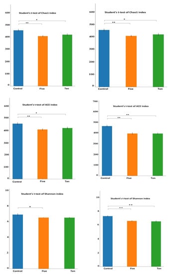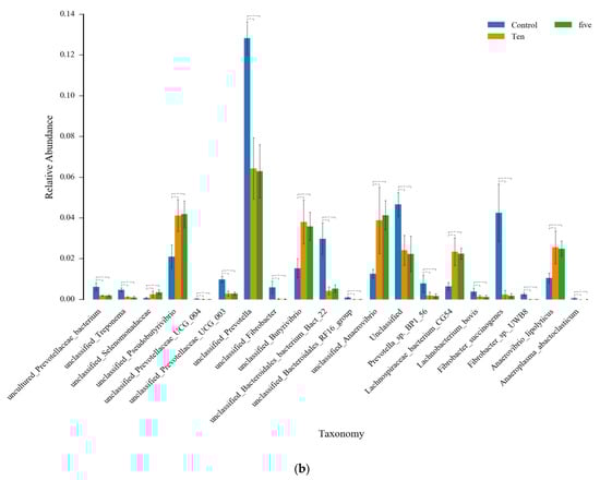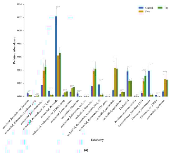 3.3. Differential Rumen Bacterial Taxa among Different Treatments Differential Alpha Diversity Analysis