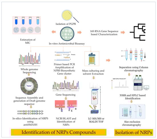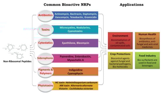 - Genome mining is a relatively new approach to the identification of NRPs. It involves the analysis of the genome sequence of microorganisms to identify BGCs for NRPSs and other biosynthetic enzymes [120]. It can also be used to predict the chemical structures of NRPs based on the presence of specific biosynthetic genes. There are several computational tools available for genome mining, such as antiSMASH and NRPSpredictor [121]. These tools can be used to predict the chemical structures of NRPs, as well as to identify potential new NRPs.