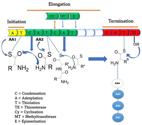 Ranjan, A.; Rajput, V.D.; Prazdnova, E.V.; Gurnani, M.; Bhardwaj, P.; Sharma, S.; Sushkova, S.; Mandzhieva, S.S.; Minkina, T.; Sudan, J.; et al. Nature’s Antimicrobial Arsenal: Non-Ribosomal Peptides from PGPB for Plant Pathogen Biocontrol. Fermentation 2023, 9, 597. https://doi.org/10.3390/fermentation9070597