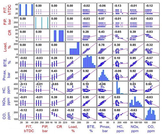 | FIT (bTDC) | FIP (bar) | CR | Load (%) | BTE (%) | Pmax (bar) | HC (ppm) | NOx (ppm) | CO (ppm) | |