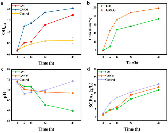3.2. Effect of GMOS on the Physiological Activity of Intestinal Bacteria