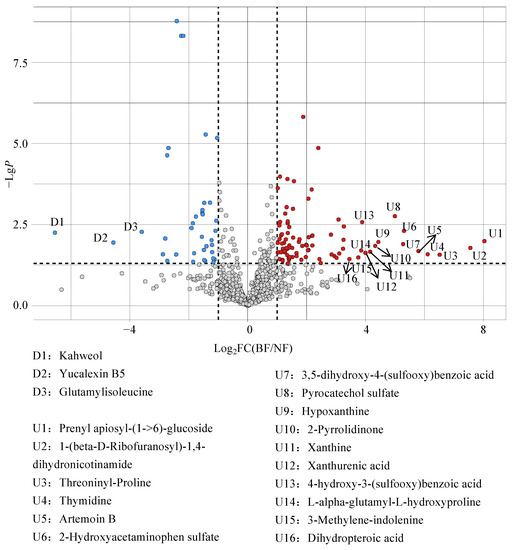 3.4. Metabolomic Analysis of Metabolites in BF and NF