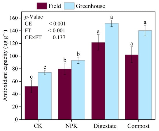 Chicago/Turabian StyleLi, Faqinwei, Yongheng Yuan, Nanding Han, Xiaojue Li, Ruijie Bai, Jorge Magaña, and Naoto Shimizu. 2023. "By-Product from Livestock Waste Recovery System Used as Fertilizer: Bioactive Compounds and Antioxidant Activity of Tomato Fruit as Affected by Fertilization under Field and Greenhouse Conditions" Fermentation 9, no. 8: 714. https://doi.org/10.3390/fermentation9080714