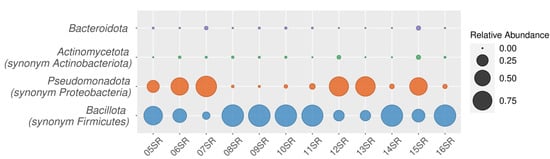 3.2.1. Taxonomic Analysis by Amplicons of V4 Region of the 16S rRNA Gene Sequencing