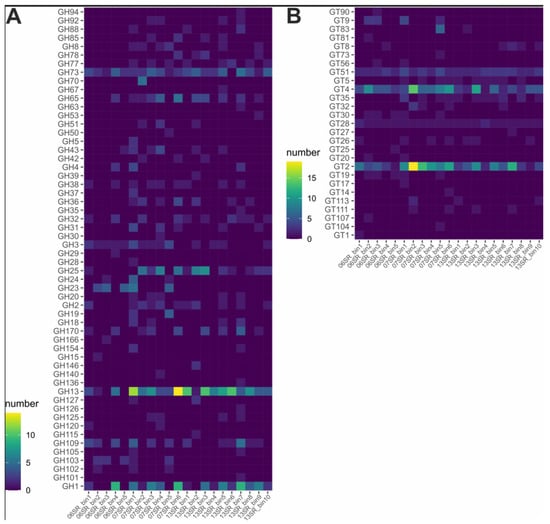 - Zhang, H.; Yohe, T.; Huang, L.; Entwistle, S.; Wu, P.; Yang, Z.; Busk, P.K.; Xu, Y.; Yin, Y. dbCAN2: A meta server for automated carbohydrate-active enzyme annotation. Nucleic Acids Res. 2018, 46, W95–W101. [Google Scholar] [CrossRef] [PubMed]