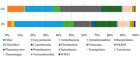 Distribution of microorganisms (Phylum level) in GS and SS.