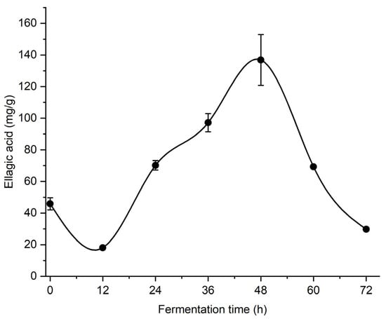 2.3.3. Determination of the Time of Maximum Accumulation of Ellagic Acid via Solid-State Fermentation