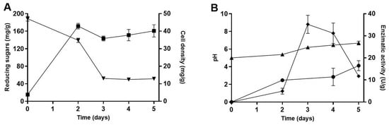 - Moran-Aguilar, M.; Costa-Trigo, I.; Calderón-Santoyo, M.; Domínguez, J.; Aguilar-Uscanga, M. Production of cellulases and xylanases in solid-state fermentation by different strains of Aspergillus niger using sugarcane bagasse and brewery spent grain. Biochem. Eng. J. 2021, 172, 108060. [Google Scholar] [CrossRef]