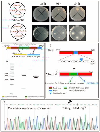 3.2. CRISPR–Cas9 System Directed Trctf1 Gene Mutagenesis in T. reesei