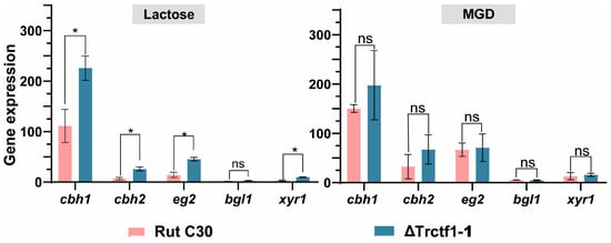- Ivanova, C.; BååTH, J.A.; Seiboth, B.; Kubicek, C.P. Systems analysis of lactose metabolism in Trichoderma reesei identifies a lactose permease that is essential for cellulase induction. PLoS ONE 2013, 8, e62631. [Google Scholar] [CrossRef] [PubMed]