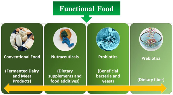 The concept of functional food is discussed thousands of times on different platforms [1]. Although the accurate definition is still a mystery, experts normally concur that in general, additives are involved in functional foods (containing microbes such as probiotics, mentioned underneath), which hold the benefit of health along with the basic nutrient content of the food as well (Figure 1). Functional foods have the potential to improve physiological mechanisms and enhance neuronal functioning at the level of the gastrointestinal tract (GIT) via altering biochemical parameters. Probiotics are considered one of the primary pathways for health benefits and are included in functional foods. It has been demonstrated that the host’s energy supply is significantly affected by the activities of microbiota present in the gut. The GI microbiota is the total population attributed to live microorganisms that inhabit a host organism’s GI tract [2].