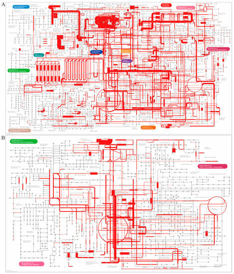 The microbial metabolic pathways of FP microbiotas (A); the biosynthesis of secondary metabolites in the FP microbiotas (B).