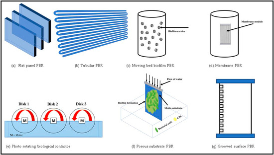 Thus, an efficient PBR should have the following characteristics: (1) the capability of harvesting and transporting light as much as possible, and distributing light in a manner such that most of the light energy is used for biomass formation; (2) permit the precise and appropriate control of operational parameters, which aids bacterial cells in growing and using light energy efficiently; (3) reduce capital and operational costs; and (4) decrease energy consumption during the process [86]. Other critical factors include mass transfer and the control of substrate/nutrient concentrations, ease of maintenance and operation, and environmental compatibility.