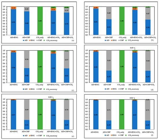 Currently, there is a lack of available data on the O&M costs of AD plants. In this study, the average O&M costs of AD plants were estimated to be $10/m3 of AD plant capacity []. O&M costs of RNG, CHP, and CO2 recovery systems were calculated based on 3%, 1.5%, and 1% of capital costs, respectively [].