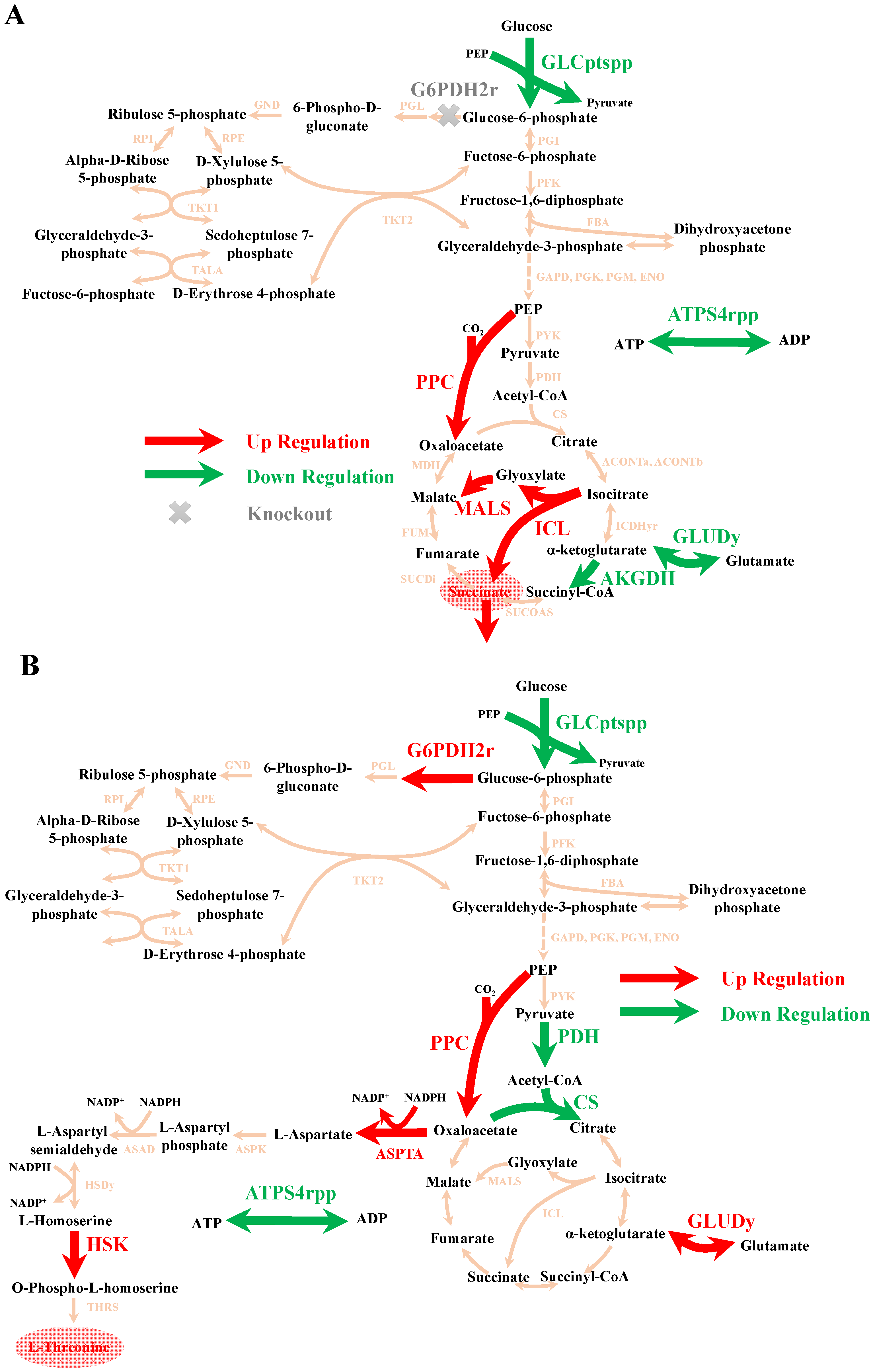 - Lee, K.H.; Park, J.H.; Kim, T.Y.; Kim, H.U.; Lee, S.Y. Systems metabolic engineering of Escherichia coli for L-threonine production. Mol. Syst. Biol. 2007, 3, 149. [Google Scholar] [CrossRef]