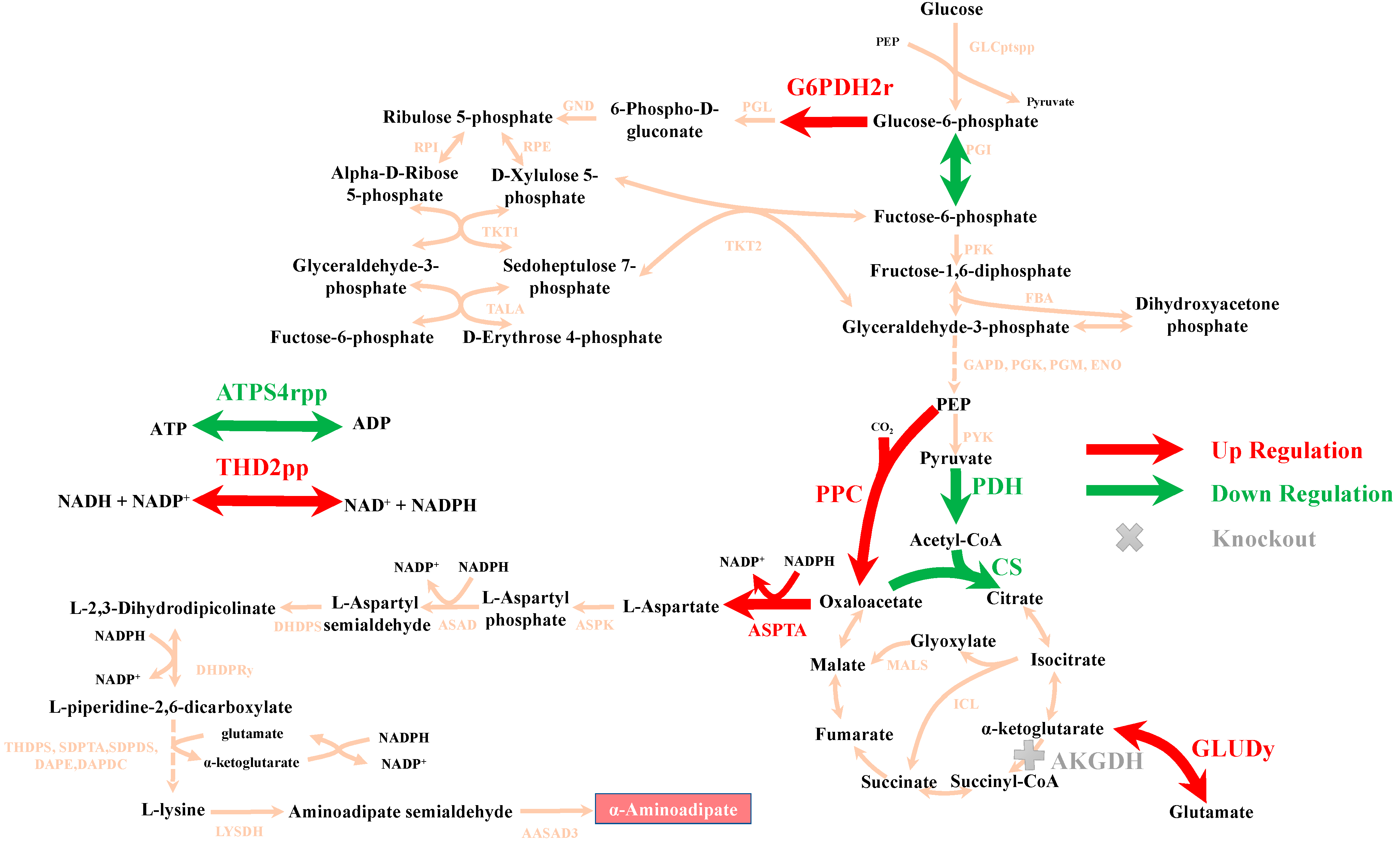 3.2.3. Strengthening Synthesis of Precursors to Increase α-Aminoadipate Production