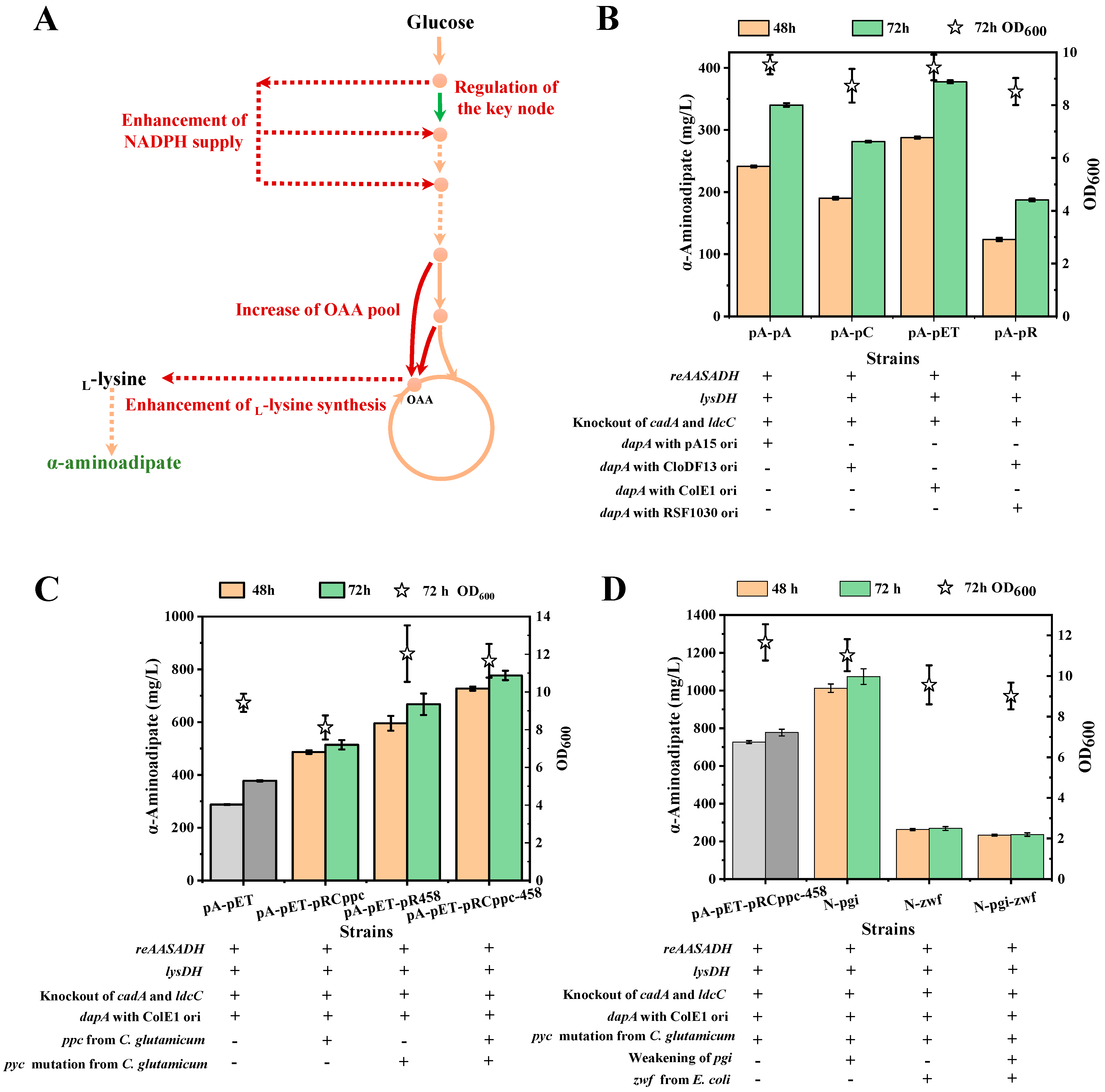 3.2.4. Regulating the Flux of the Key Node to Increase α-Aminoadipate Production