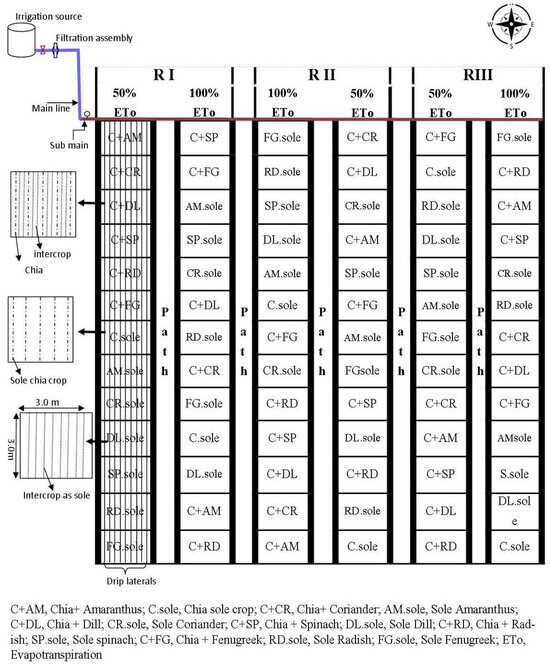 Experimental layout of chia based intercropping system under different irrigation levels.