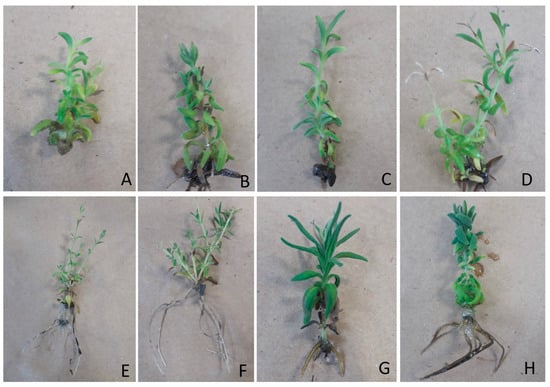 Before transferring the rooted plants to external conditions, the lids of the culture plates were progressively opened to facilitate a pre-acclimatization phase within the laboratory. Subsequently, the plants were transplanted into vials filled with a sterile mixture of peat and perlite at a 1:1 ratio within a controlled greenhouse environment. The plantlets derived from various lavender genotypes and culture media were carefully monitored in separate vials under the shelter of a small mini tunnel to ensure a gradual adjustment to external conditions.