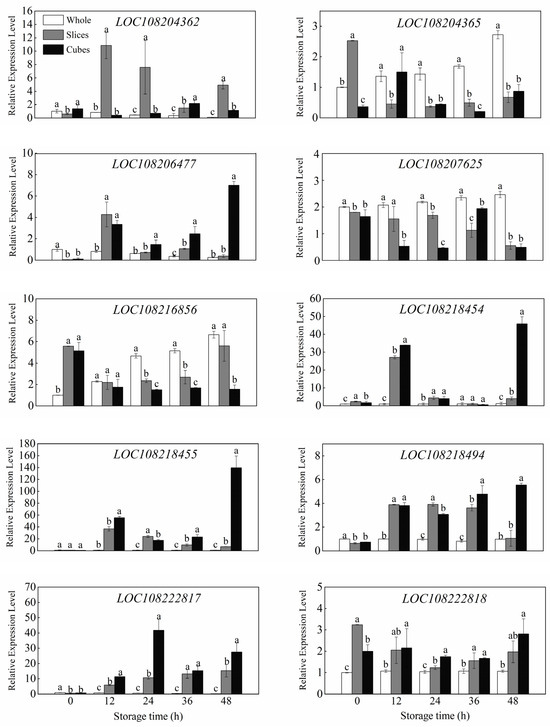 3.4. Effects of Different Cutting Styles on Relative Expression Levels of the Genes Related to INV in Carrots
