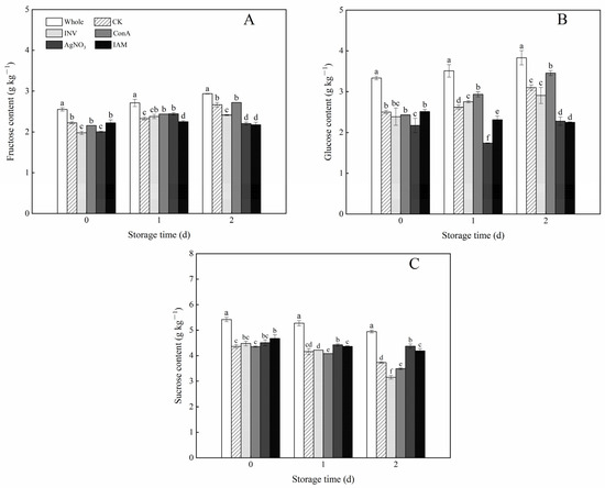- Wang, K.; Shao, X.F.; Gong, Y.F.; Zhu, Y.; Wang, H.F.; Zhang, X.L.; Yu, D.D.; Yu, F.; Qiu, Z.Y.; Lu, H. The metabolism of soluble carbohydrates related to chilling injury in peach fruit exposed to cold stress. Postharvest Biol. Technol. 2013, 86, 53–61. [Google Scholar] [CrossRef]