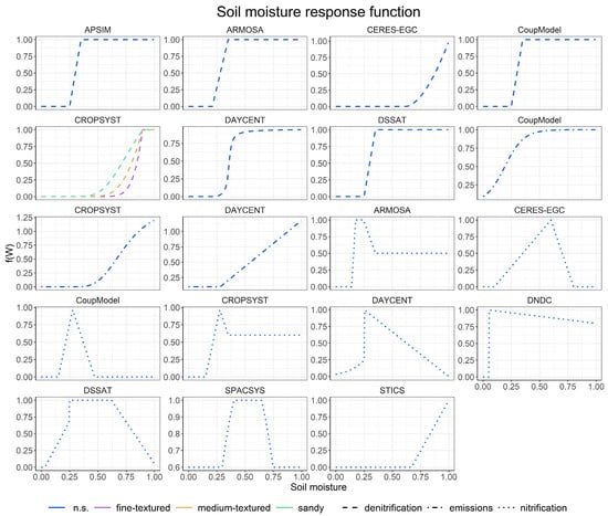 | all model | nitrification response function to soil moisture | unitless | various | fn(W) |