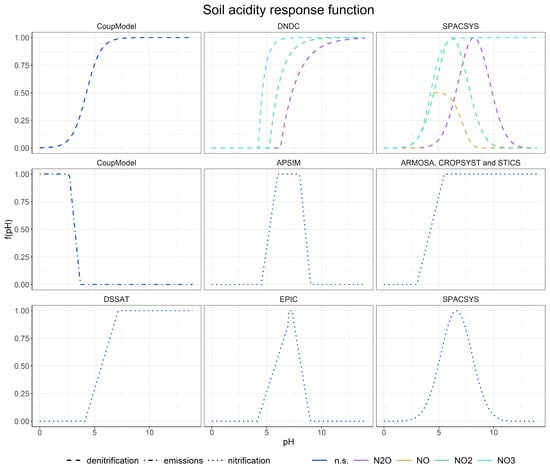 | all model | nitrification response function to soil acidity | unitless | various | fn(pH) |