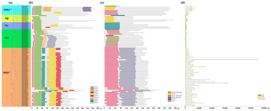 - Chen, F.; Zhang, X.; Liu, X.; Zhang, L. Evolutionary Analysis of MIKC(c)-Type MADS-Box Genes in Gymnosperms and Angiosperms. Front. Plant Sci. 2017, 8, 895. [Google Scholar]