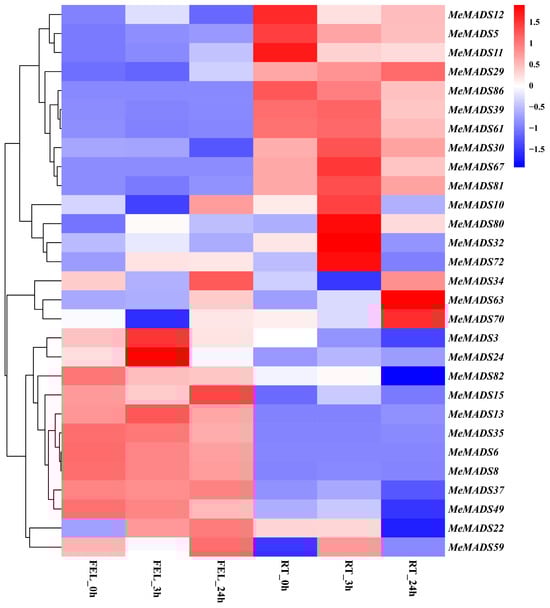 Zhang, Q.; Li, Y.; Geng, S.; Liu, Q.; Zhou, Y.; Shen, S.; Shen, Z.; Ma, D.; Xiao, M.; Luo, X.; et al. Genome-Wide Identification and Expression Analysis of the MADS-Box Gene Family in Cassava (Manihot esculenta). Horticulturae 2024, 10, 1073. https://doi.org/10.3390/horticulturae10101073
