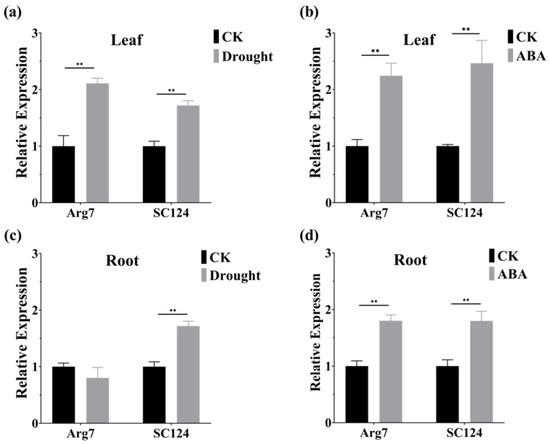 - Abe, H.; Yamaguchi-Shinozaki, K.; Urao, T.; Iwasaki, T.; Hosokawa, D.; Shinozaki, K. Role of arabidopsis MYC and MYB homologs in drought- and abscisic acid-regulated gene expression. Plant Cell 1997, 9, 1859–1868. [Google Scholar] [PubMed]