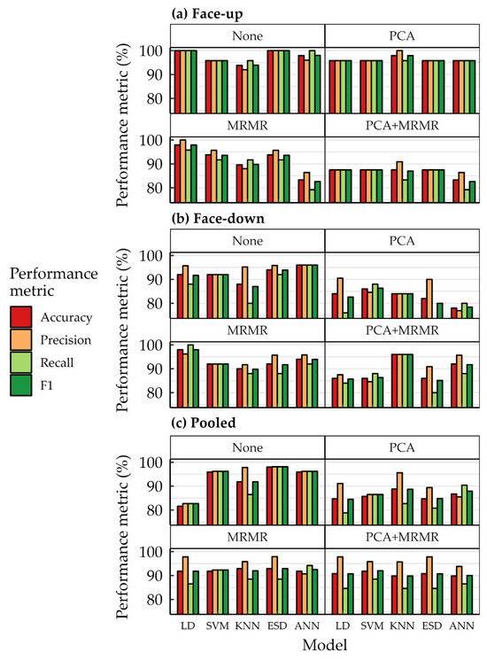 where TP are the true positive, TN are the true negative, FP are the false positive and FN are the false negative cases, respectively [52,53]. During evaluation and selection of the best-fit model for each image orientation, priority was given to metrics for the test dataset, and in the event of ties, the F1 score was used to select the highest-performing model.