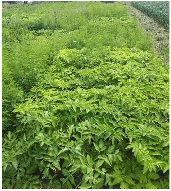 A. archangelica seedlings were produced in open field conditions via hand sowing in summer (at the beginning of August) at a soil depth of 5–7 cm. The seeds originated from a commercial farm in Serbia engaged in the production of A. archangelica. This farm received A. archangelica seed from a seed collection at the Institute for Medicinal Plant Research “Dr Josif Pančić” for starting their production. The seeds were collected in the beginning of June from the central part of the inflorescence and stored in a dark and dry place for ripening. After ripening, the seeds were stored in a freezer at a temperature of −20 °C. In November, the seedlings were ready for planting at the experimental field. Transplantation was performed with a 70 cm distance between rows and 33–35 cm between plants in the row.