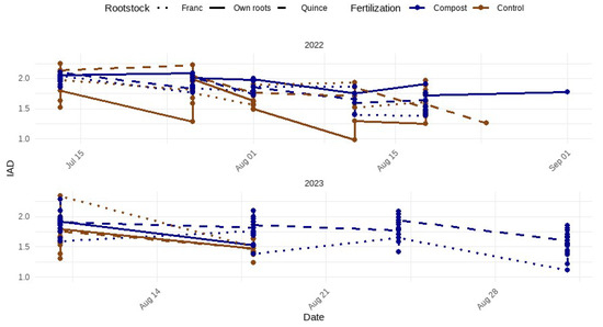 3.4. Influence of the Compost Fertilization on the Annual Vegetative Growth