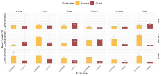 | Own roots | Compost | 49.90 (a) | 45.89 (a) | 49.12 (a) | 47.19 (b) | 34.65 (b) | 47.19 (a) | 45.93 (a) | 47.45 (a) | 48.42 (a) | |